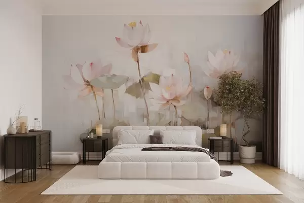 Fotomurales Delicadas flores de loto pintadas con acrílico Nr. w09067