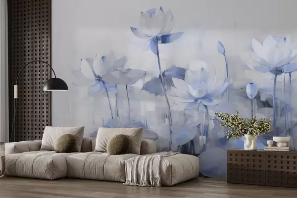 murales de pared Delicadas flores de loto pintadas con acrílico w09067v1