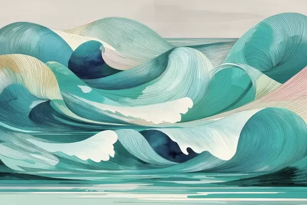 Fotomurales Olas con líneas en colores azul y turquesa Nr. w09078