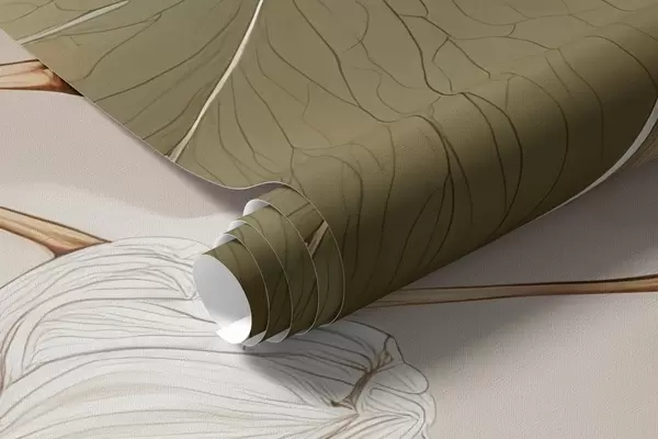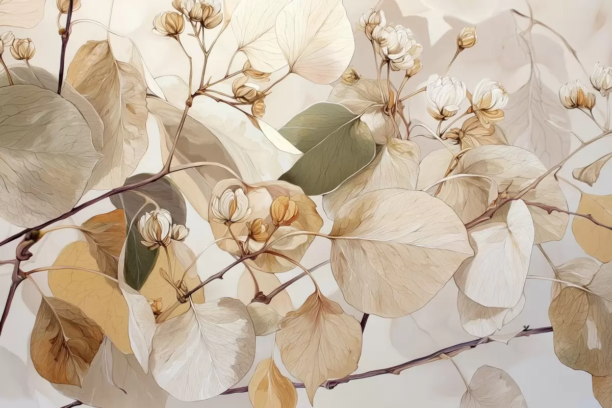 Fotomurales Ramas de hojas y flores de álamo temblón al óleo en tonos beige Nr. w09082