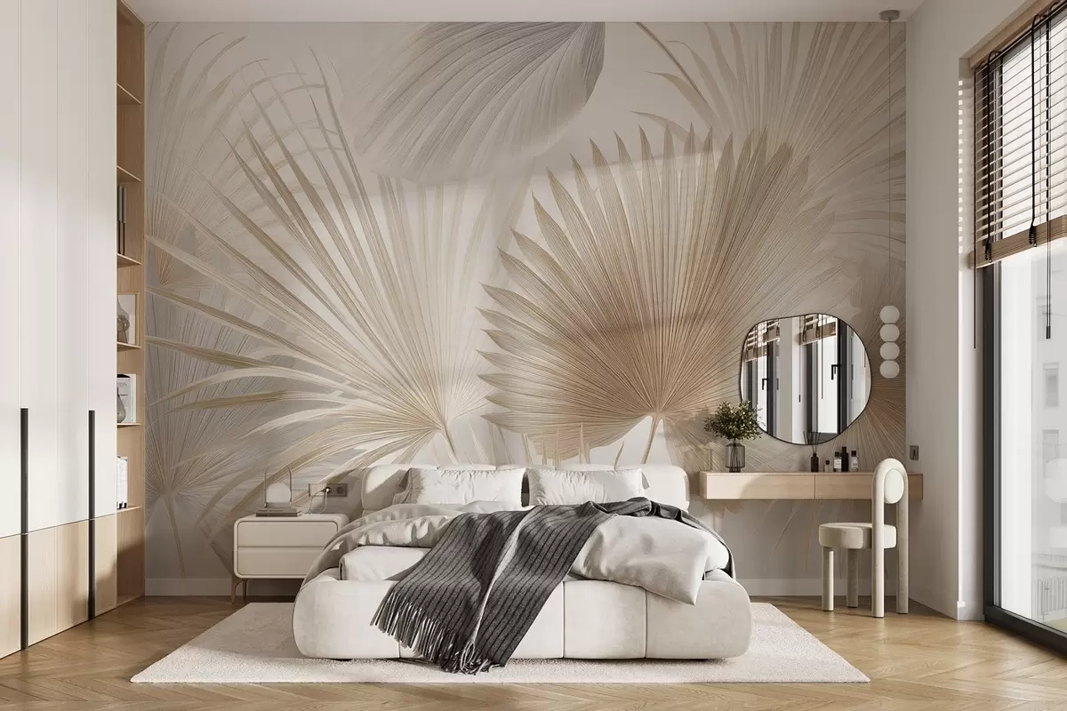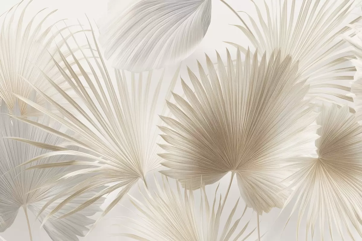 Fotomurales Suaves abanicos de hojas tropicales en tonos beige claro y azulados Nr. w09084