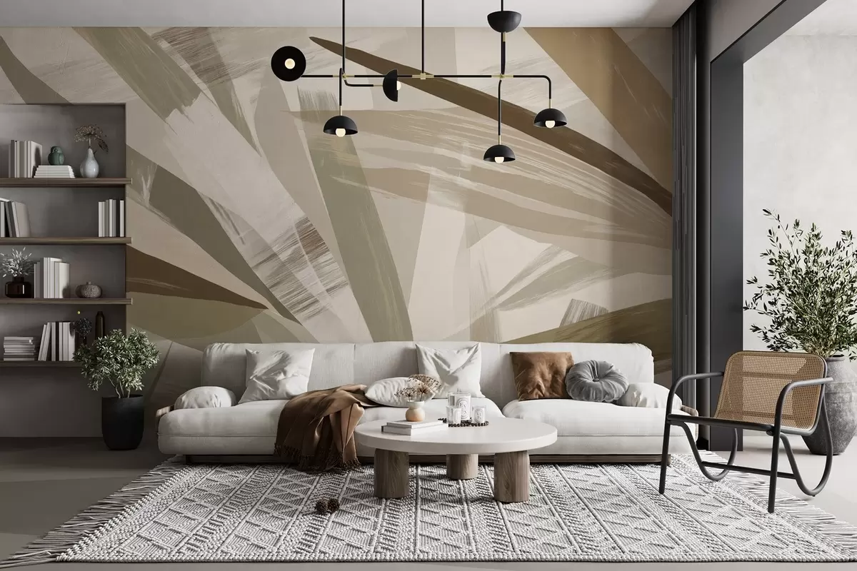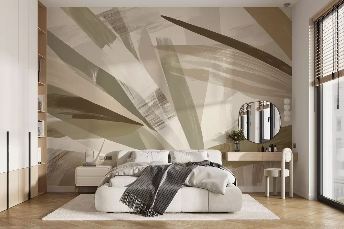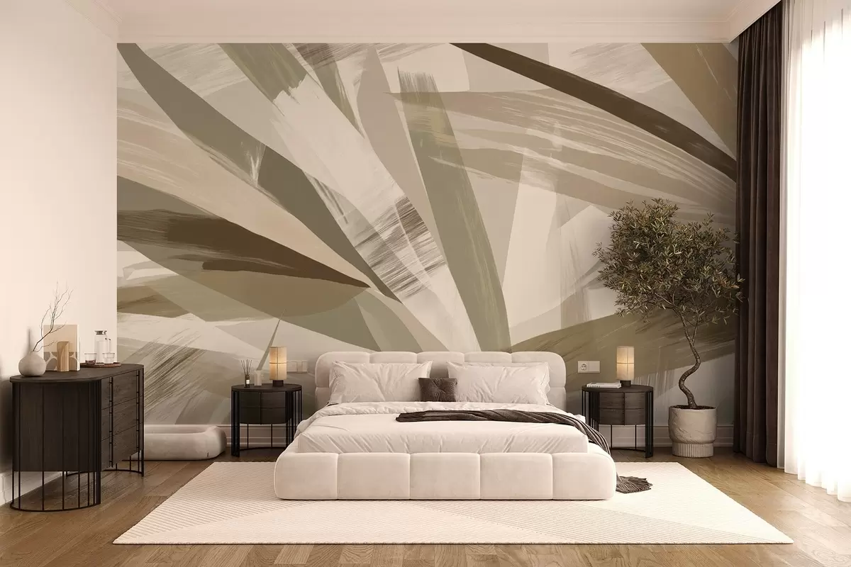 Fotomurales Hojas abstractas en tonos verdes y beige Nr. w09091