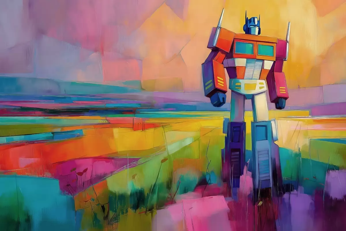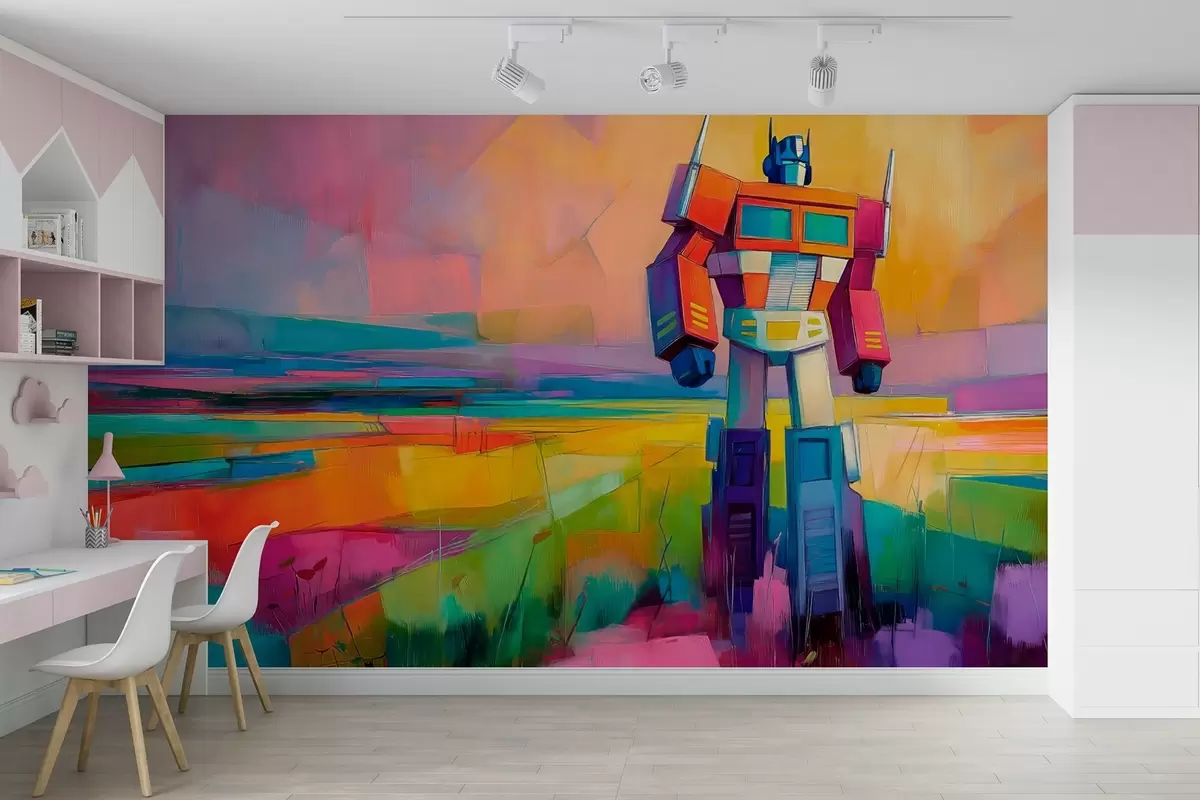 Fotomurales Robot contra un paisaje abstracto brillante en estilo de pintura al óleo Nr. w09096