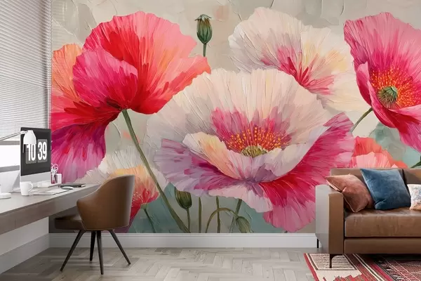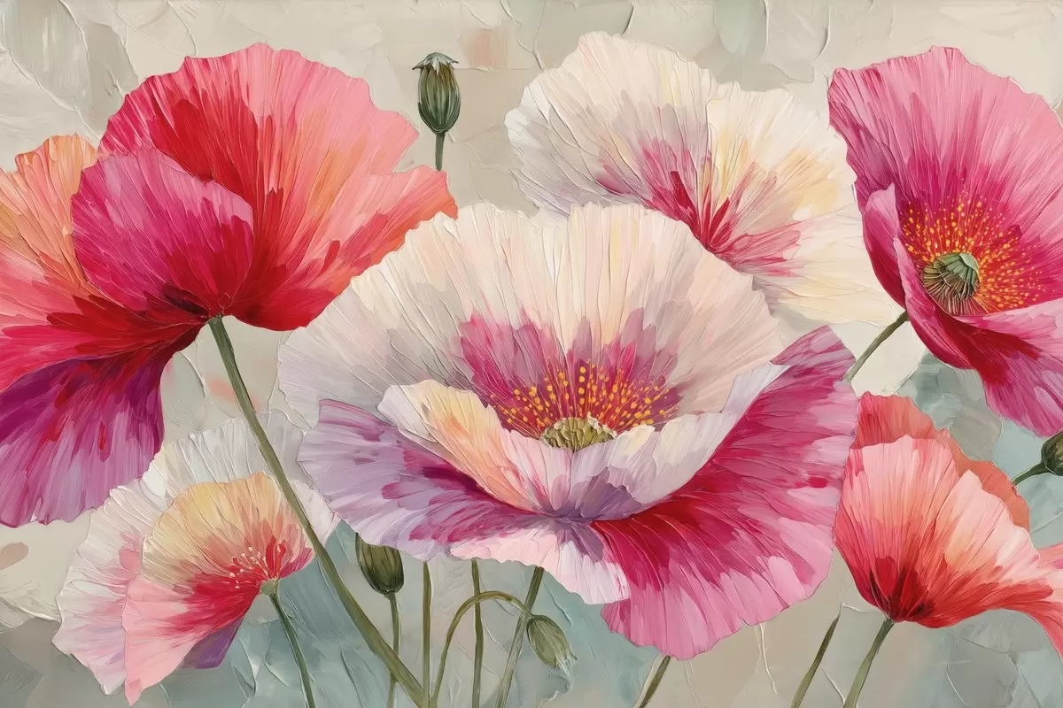 Fotomurales Amapolas blancas y rojas al óleo con pinceladas atrevidas Nr. w09097