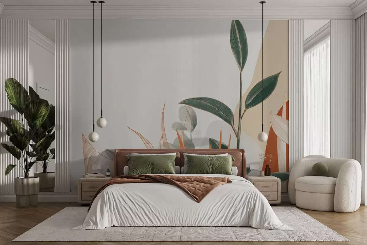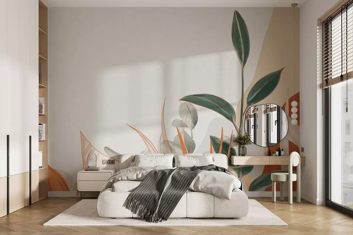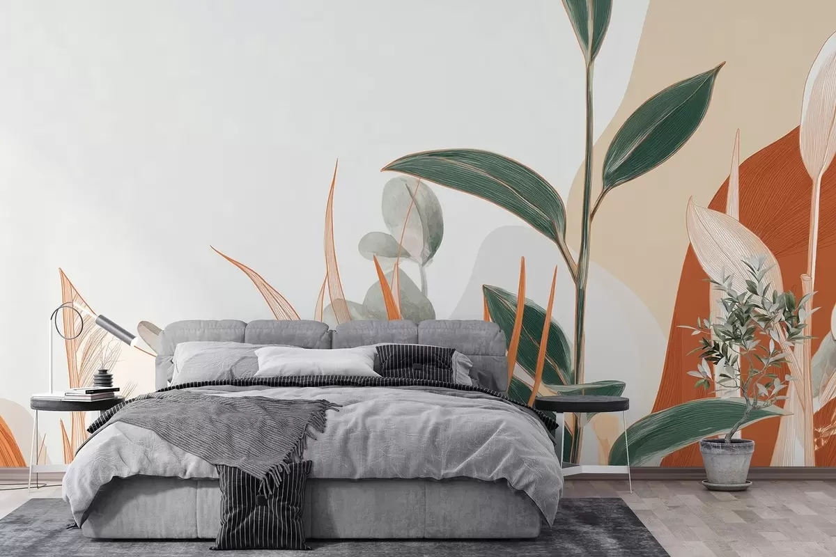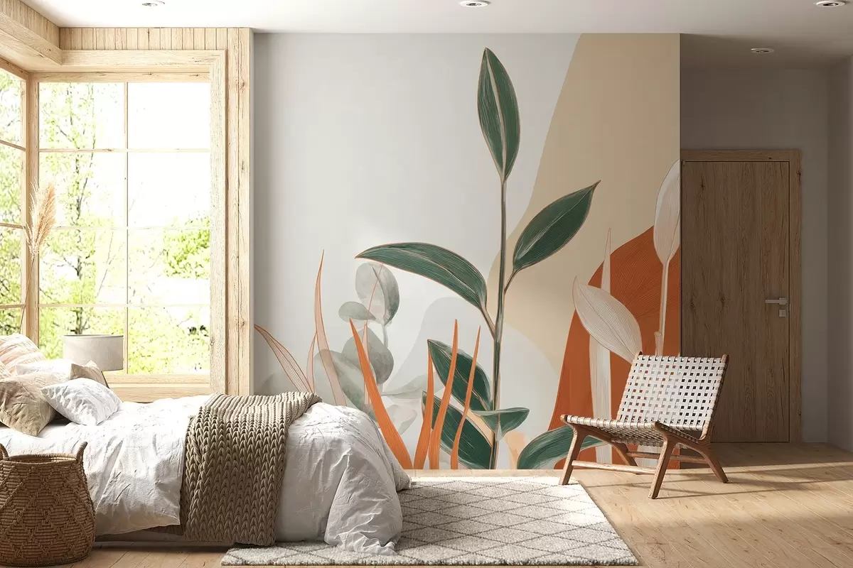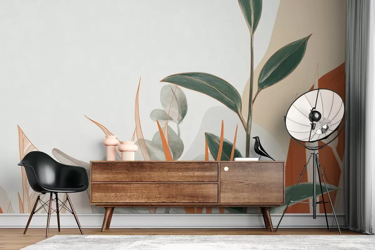 Fotomurales Hojas en tonos beige y verde Nr. w09101