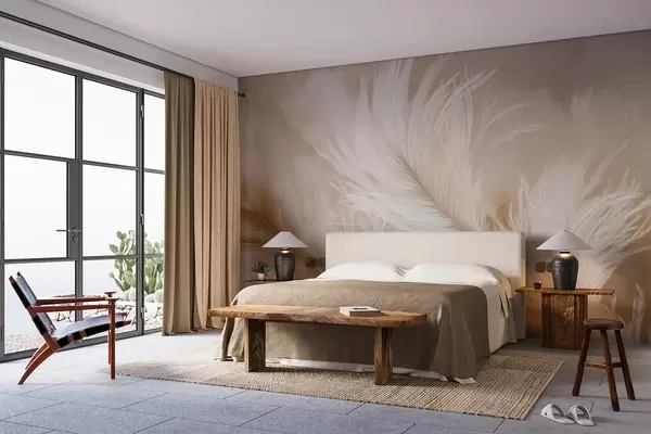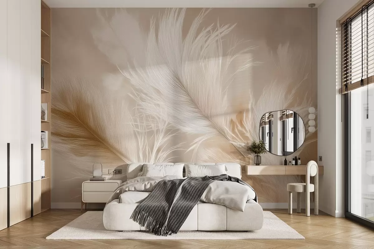 murales de pared Plumas voladoras sobre fondo beige w09102