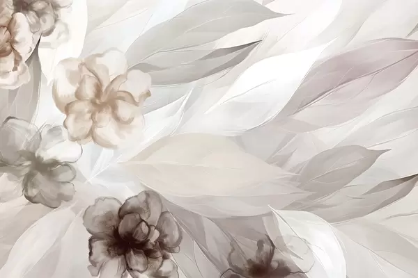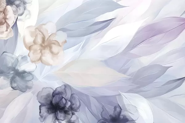 Fotomurales Delicadas flores y hojas en tonos blancos, azules, púrpuras y beige fondo floral , colores suaves, delicados pétalos Nr. w09111