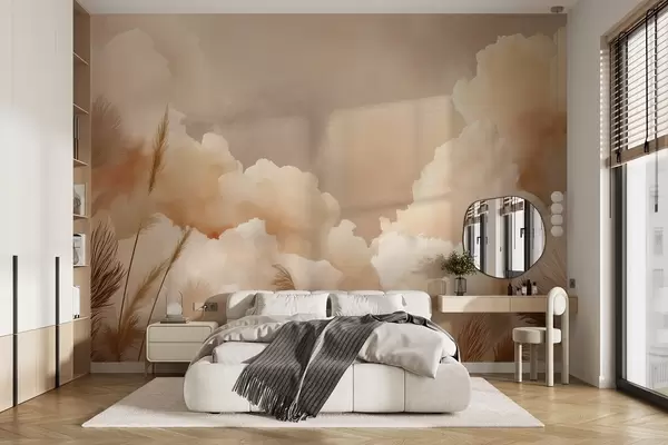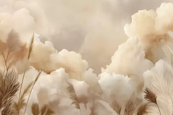 Fotomurales Cielo beige con nubes cálidas y hierba de la pampa Nr. w09124