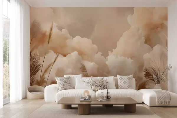 Fotomurales Cielo beige con nubes cálidas y hierba de la pampa Nr. w09124