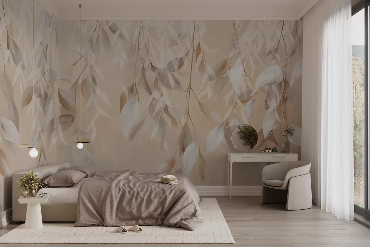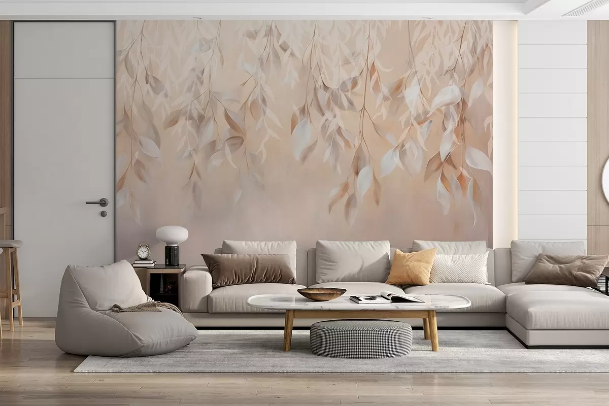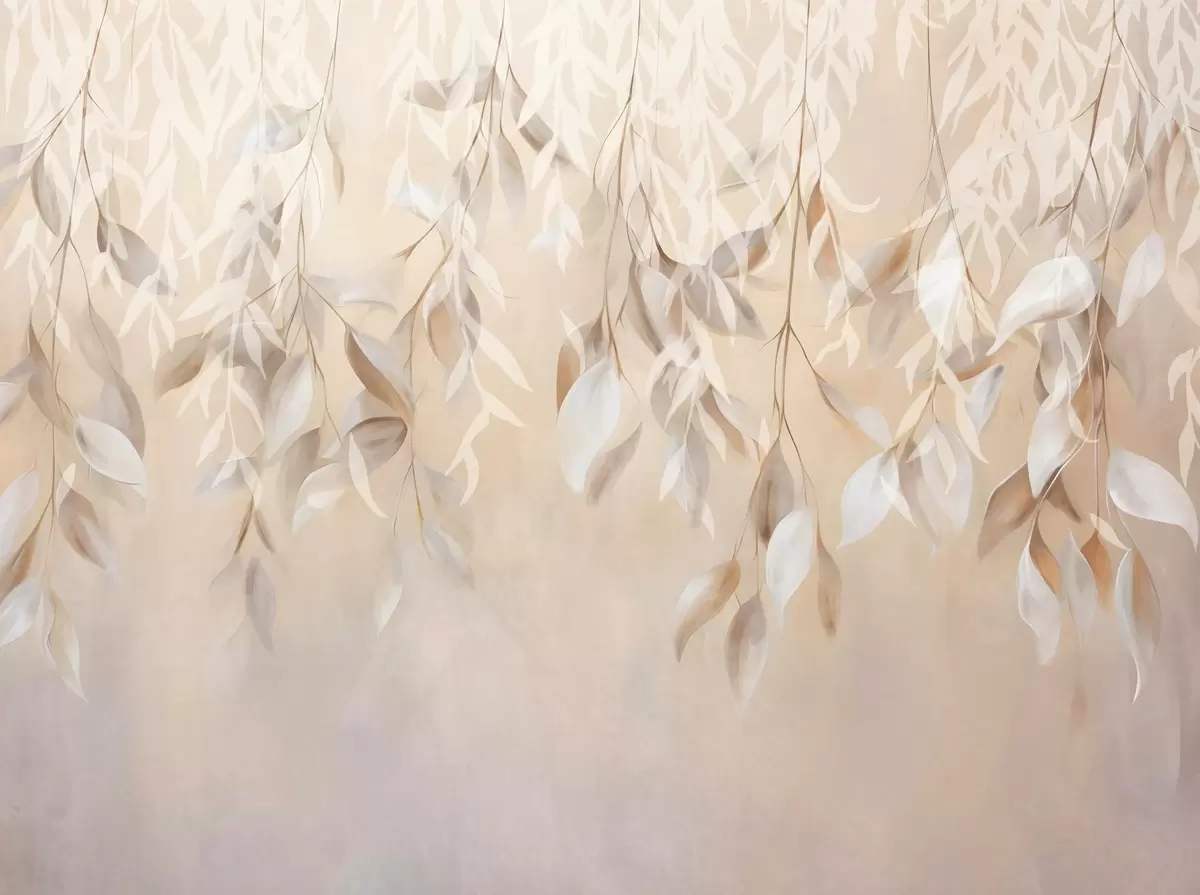 Fotomurales Hojas colgantes de textura blanca y beige con una suave paleta de colores, melocotón, gris y blanco delicado de fondo Nr. w09136