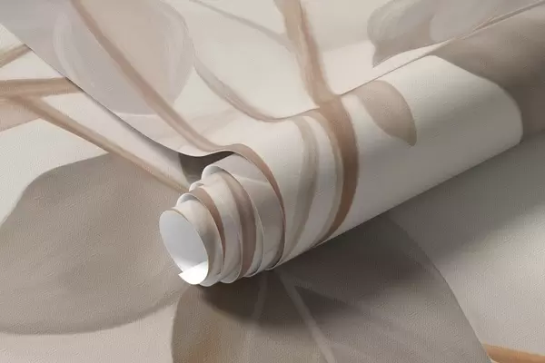 Fotomurales Flores de algodón con tallos y hojas en una paleta de color marrón claro, fondo beige, suave y delicado, estilo acuarela Nr. w09141