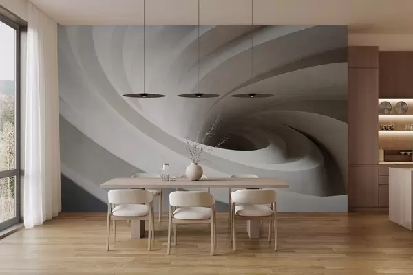 Fotomurales Remolino abstracto texturizado de capas blancas y beige, creando un efecto de vórtice, composición dinámica, diseño minimalista moderno Nr. w09144