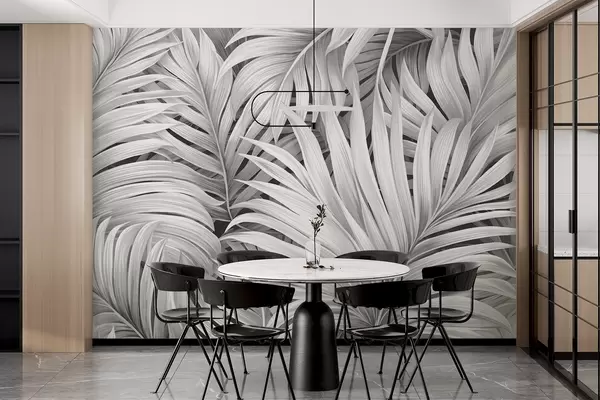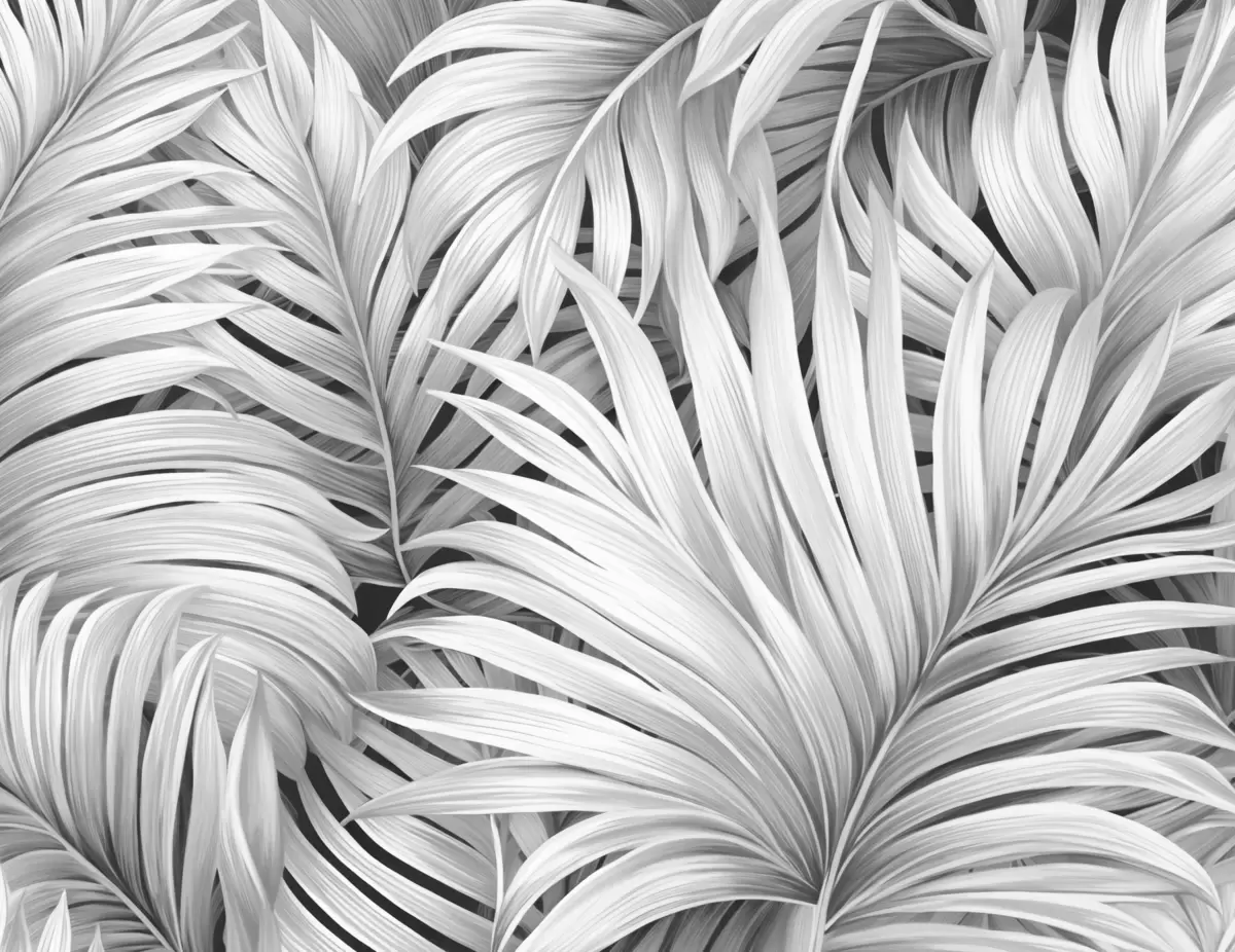 Fotomurales Hojas de palmera tropical con textura monocromática, creando un estampado tropical y botánico Nr. w09145