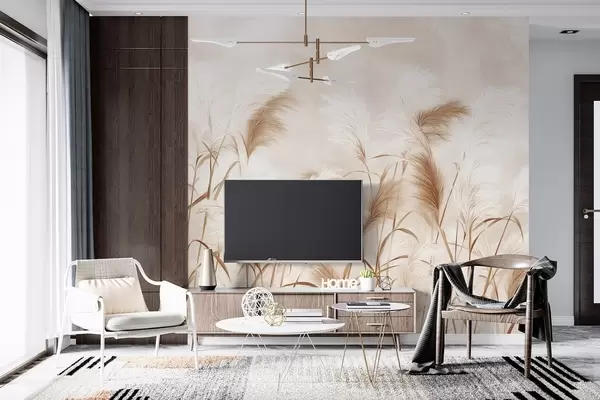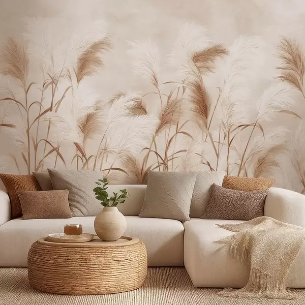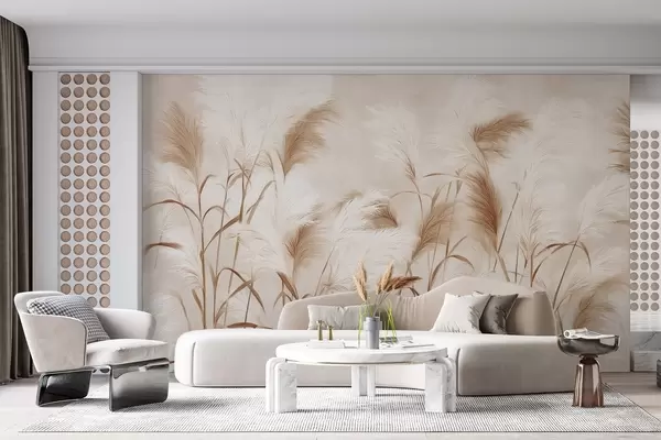 Fotomurales Elegantes flores de hierba de la pampa en suaves tonos beige y lechosos Nr. w09150v1