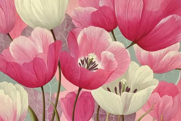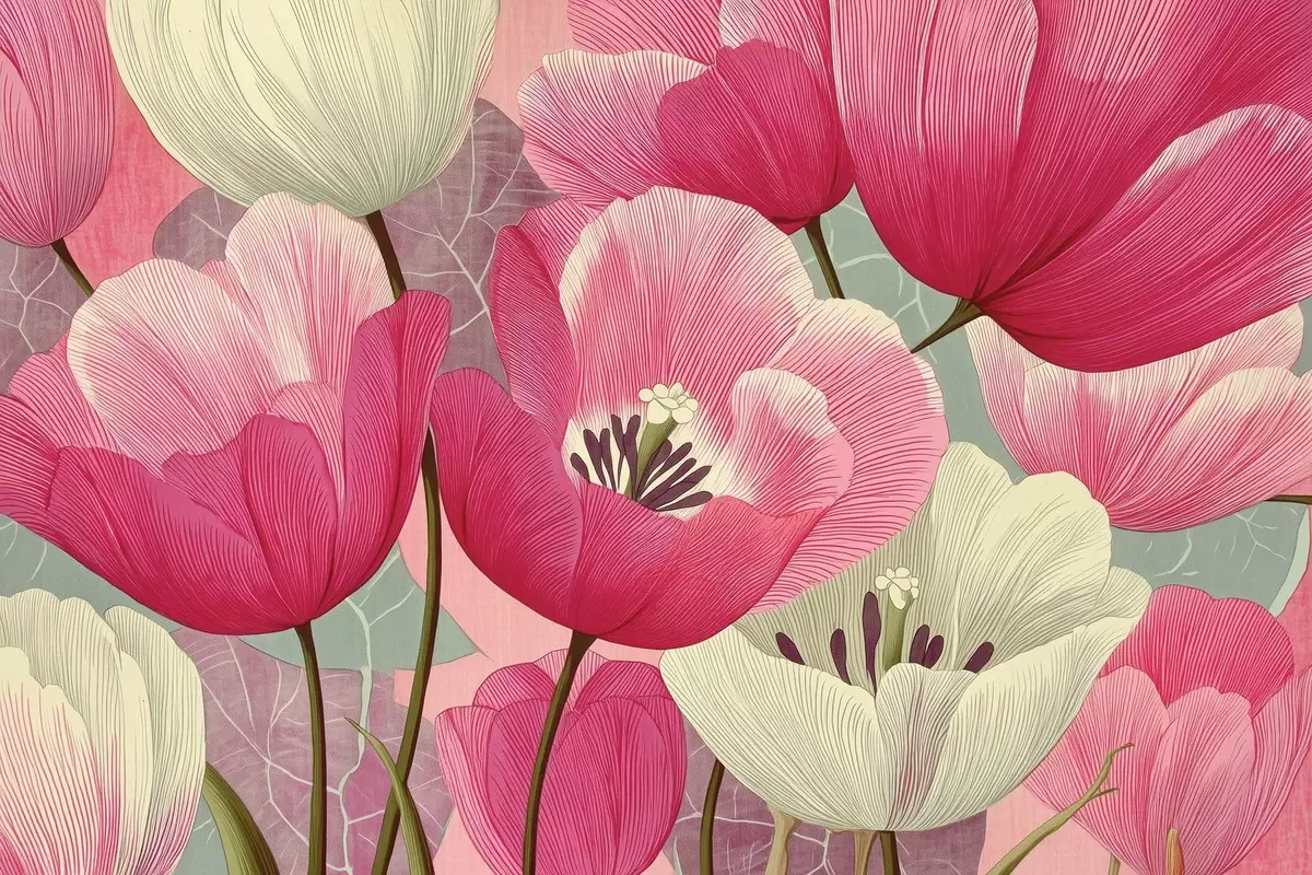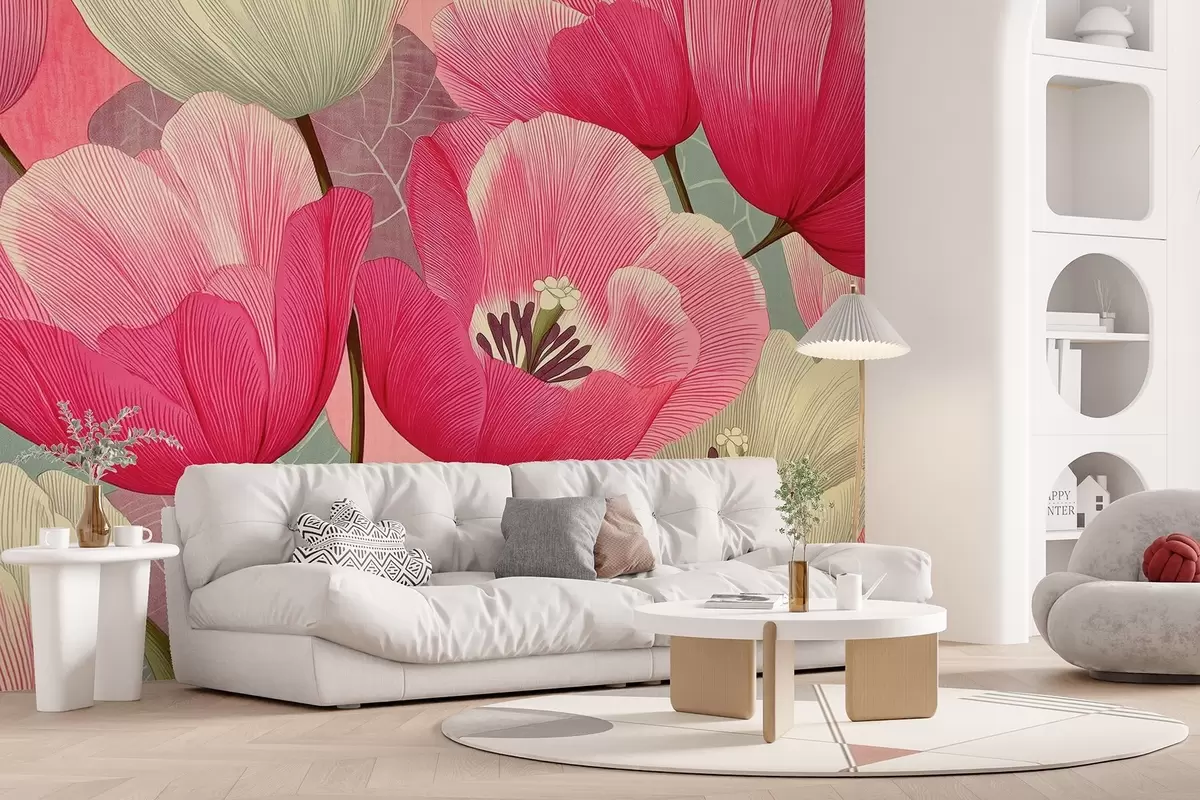 Fotomurales Amapolas vivas con hojas gráficas de fondo Nr. w09152