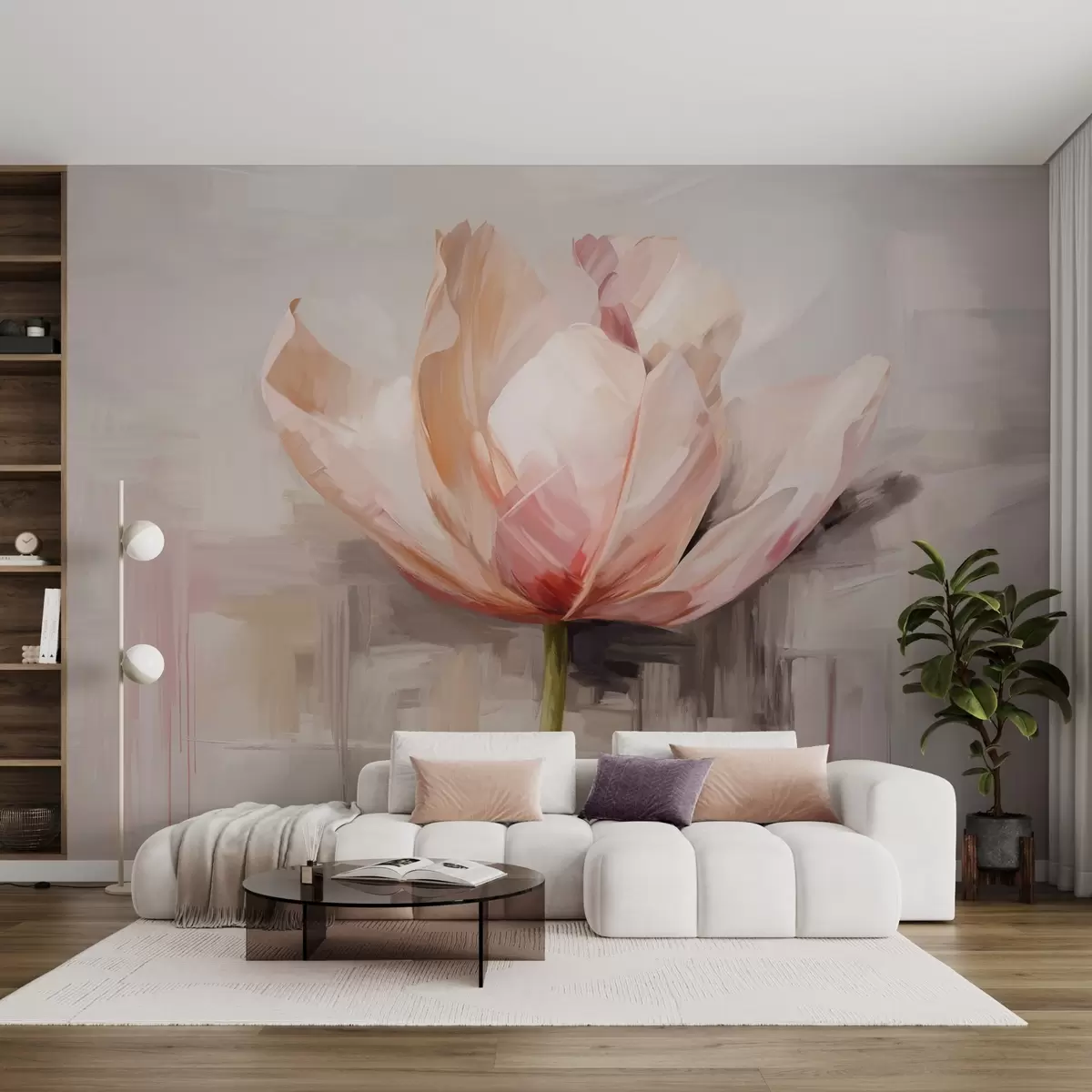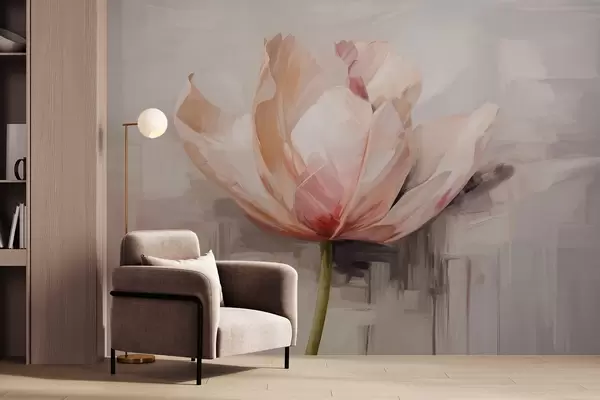 Fotomurales Tulipán rosa, imitación de pintura al óleo con suaves pinceladas, fondo abstracto con tonos pastel de gris y beige Nr. w09187