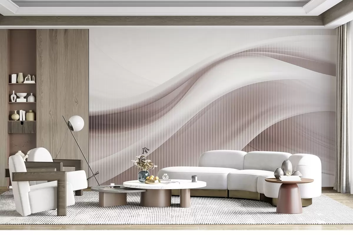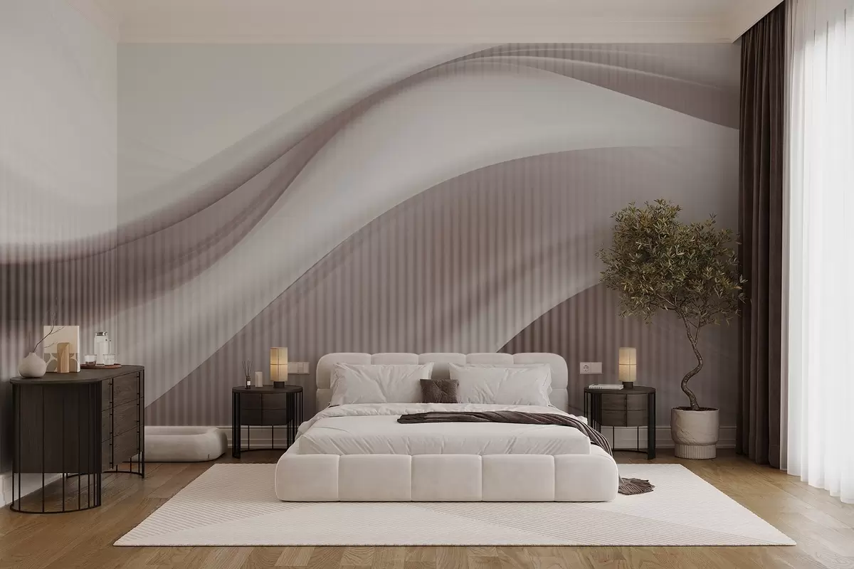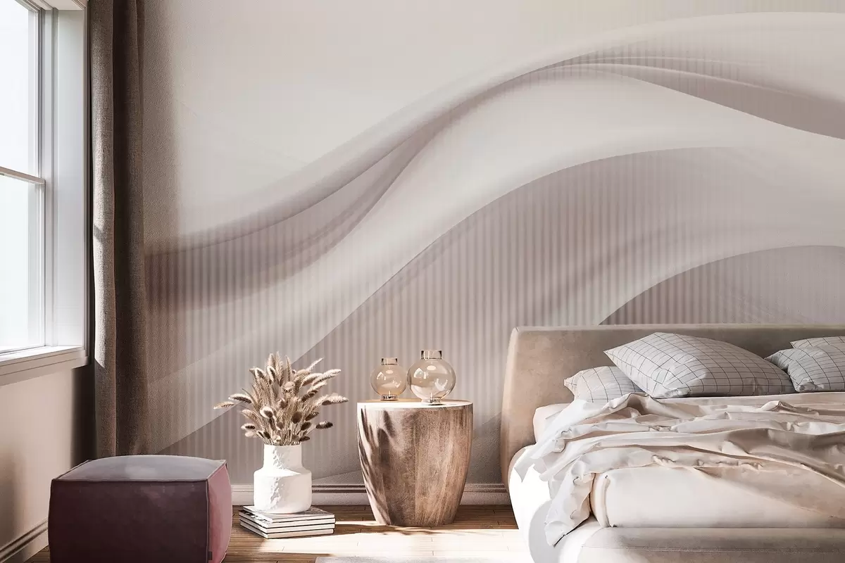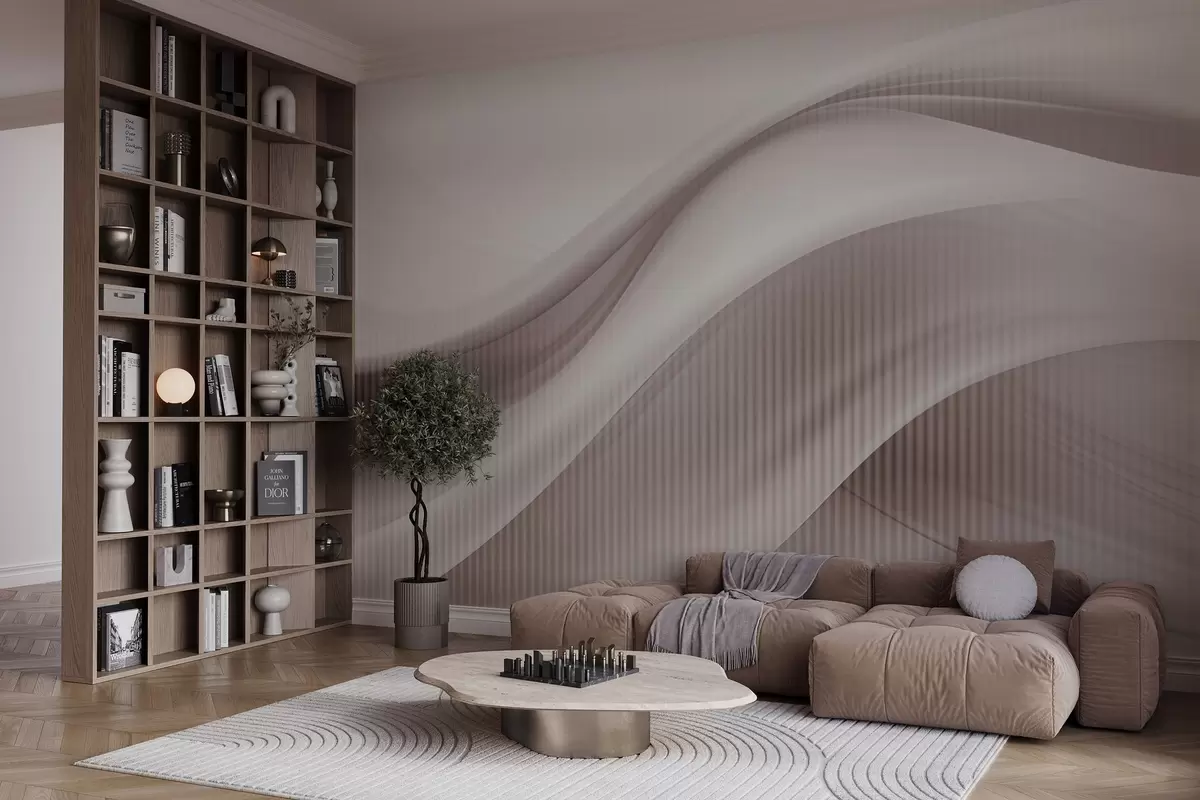 Fotomurales Estampado abstracto con líneas fluidas y sutiles rayas verticales, que crean una sensación de movimiento y profundidad, paleta beige Nr. w09189