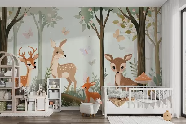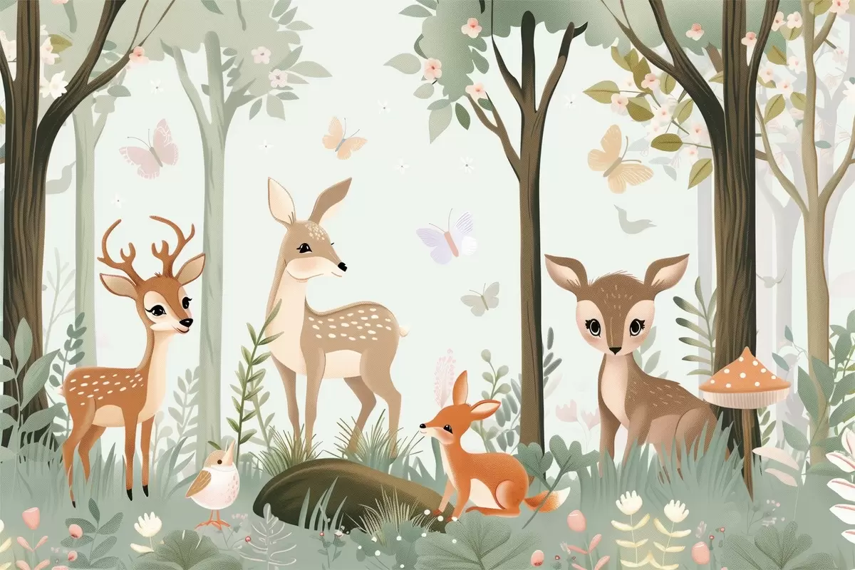 Fotomurales Caprichosos animales del bosque en tonos verdes Nr. w09227