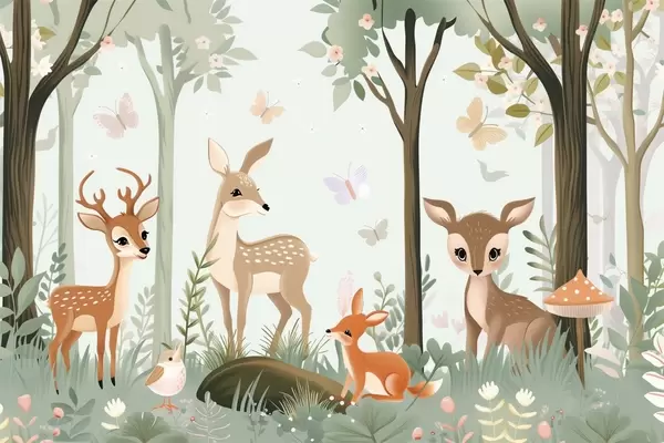 Fotomurales Caprichosos animales del bosque en tonos azules Nr. w09227v1