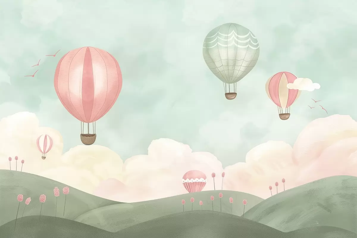 Fotomurales Globos aerostáticos sobre colinas con nubes Nr. w09228