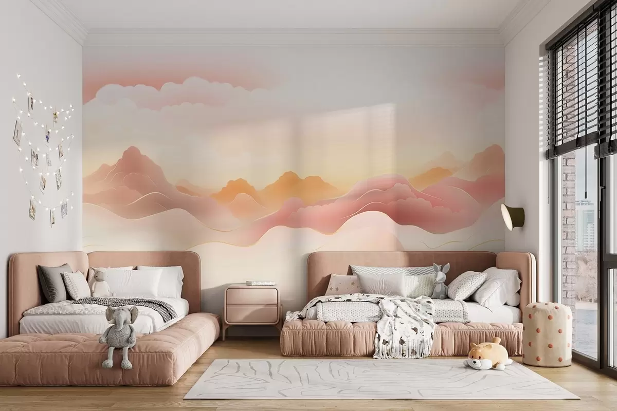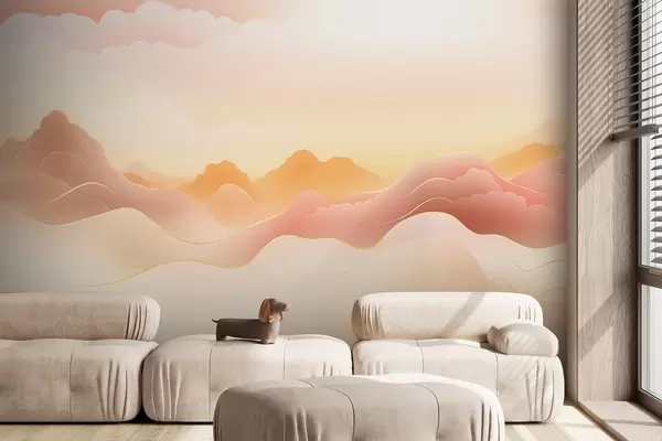 Fotomurales Montañas neblinosas bajo un cálido amanecer Nr. w09242