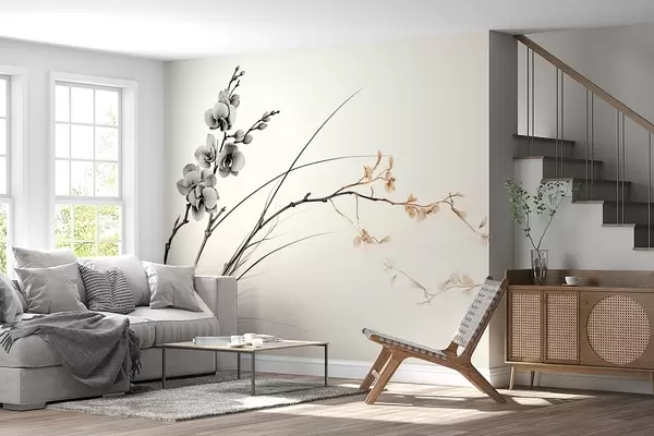 Fotomurales Rama de orquídea minimalista en suaves tonos sepia y grises Nr. w09250