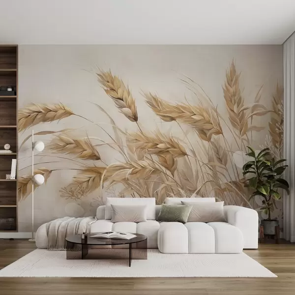 Fotomurales Campo con textura de trigo y espigas beige mecidas por el viento, colores suaves y apagados que crean una sensación de calidez Nr. w09264