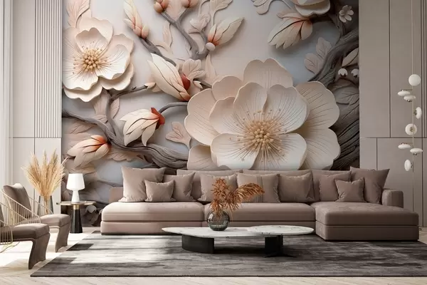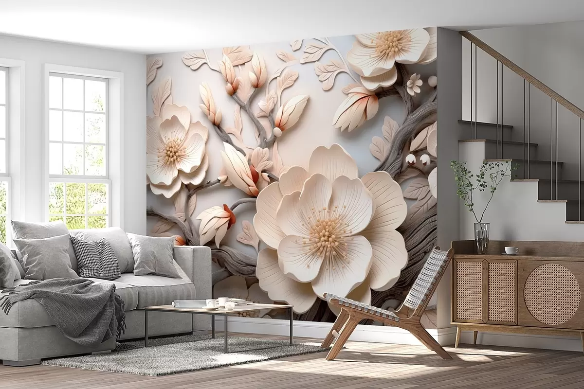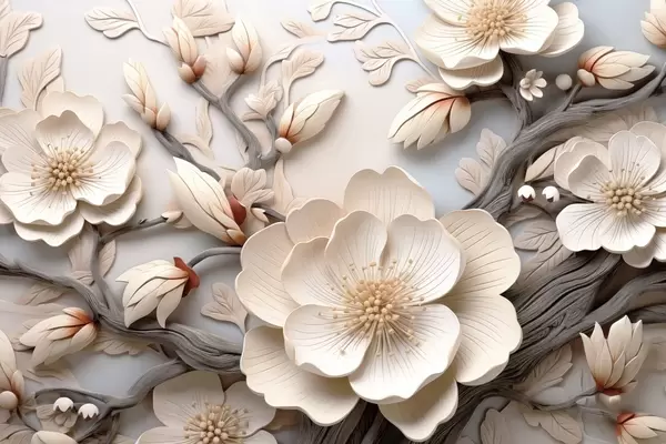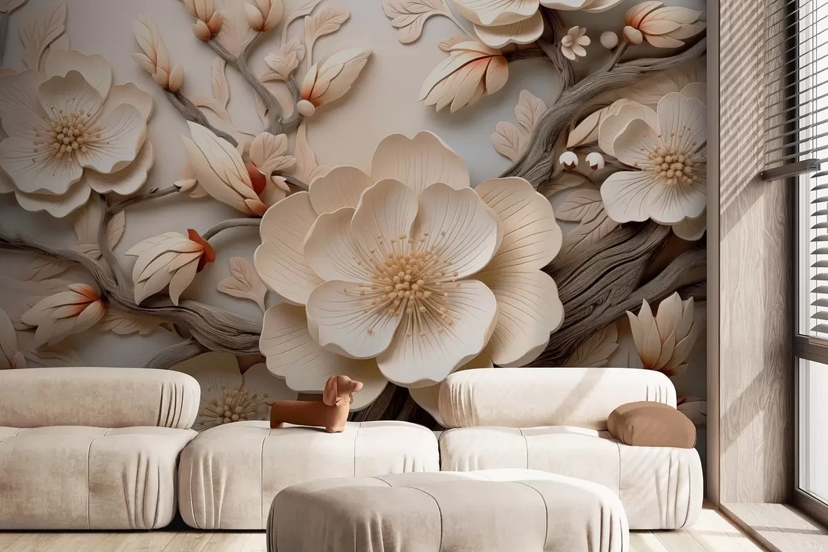 Fotomurales Flores y ramas volumétricas en tonos claros Nr. w09272