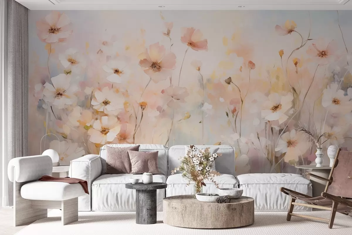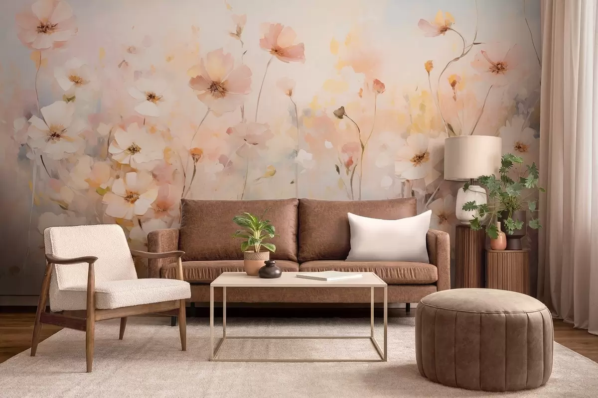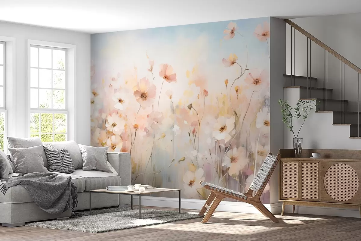 Fotomurales Flores silvestres en tonos pastel en estilo acuarela Nr. w09280