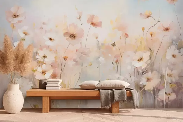 Fotomurales Flores silvestres en tonos pastel en estilo acuarela Nr. w09280
