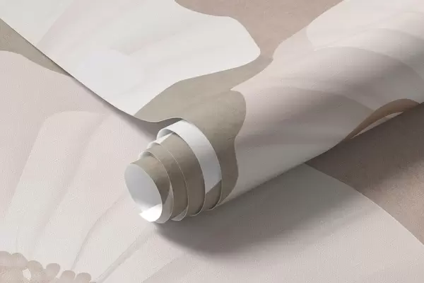 Fotomurales Amapolas en colores blanco y beige con formas geométricas en el fondo, círculos y arcos, estilo minimalista, colores suaves Nr. w09289