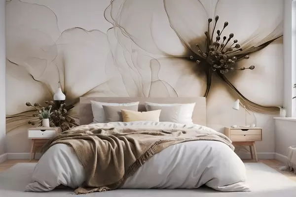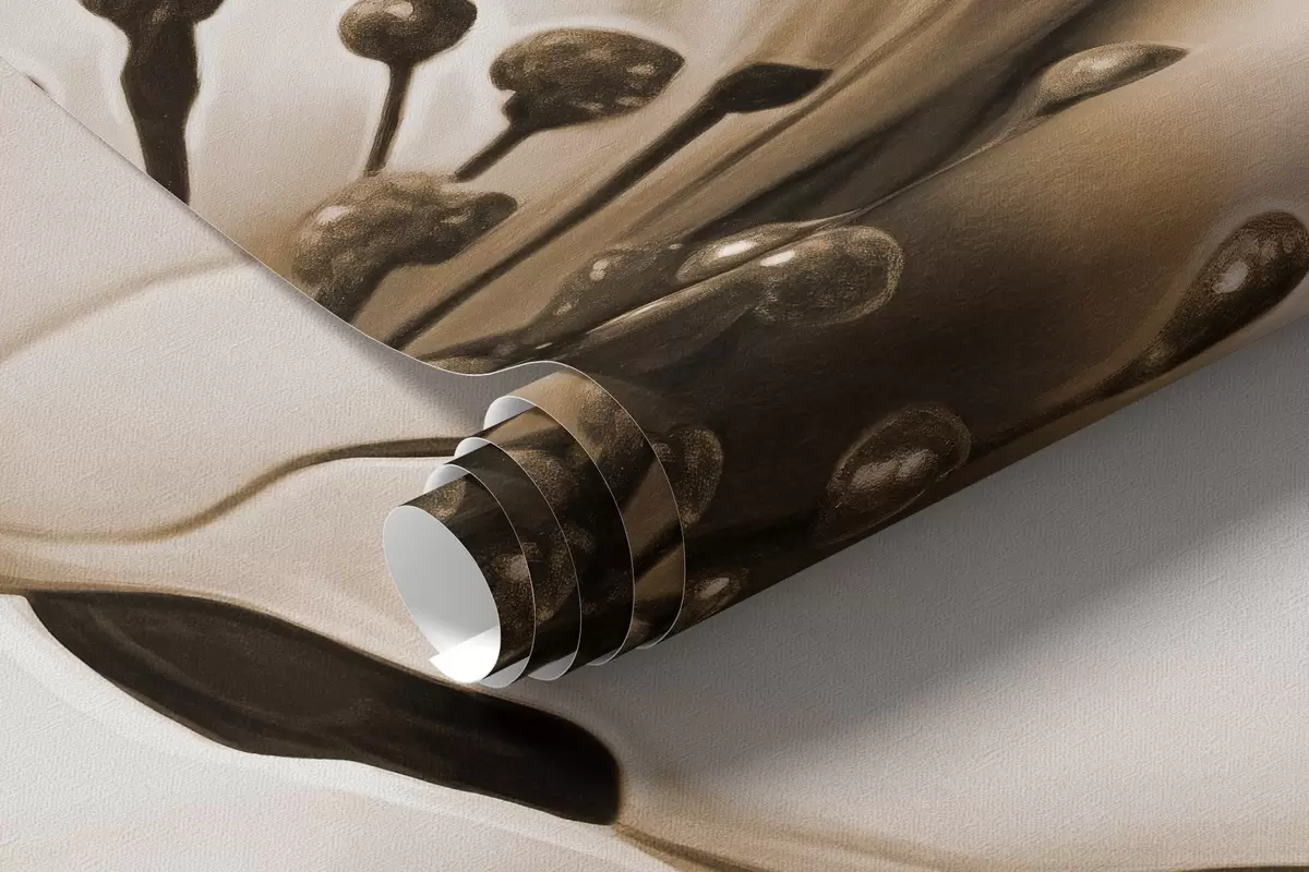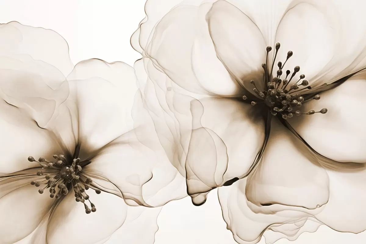 Fotomurales Dos flores marrones de textura translúcida con estambres visibles, pétalos delicados superpuestos y una textura suave y fluida Nr. w09295