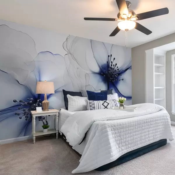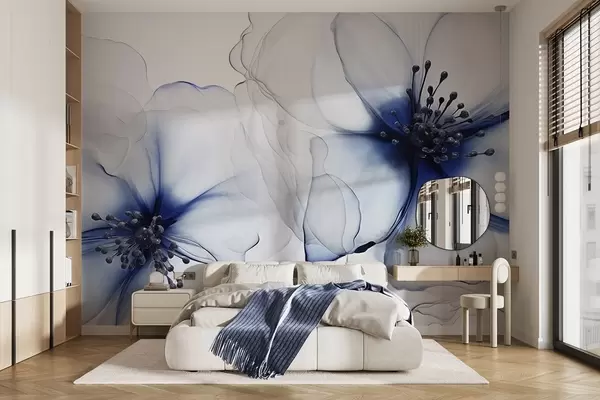 Fotomurales Dos flores azules de textura translúcida con estambres visibles, delicados pétalos superpuestos y una suave textura fluida Nr. w09295v1