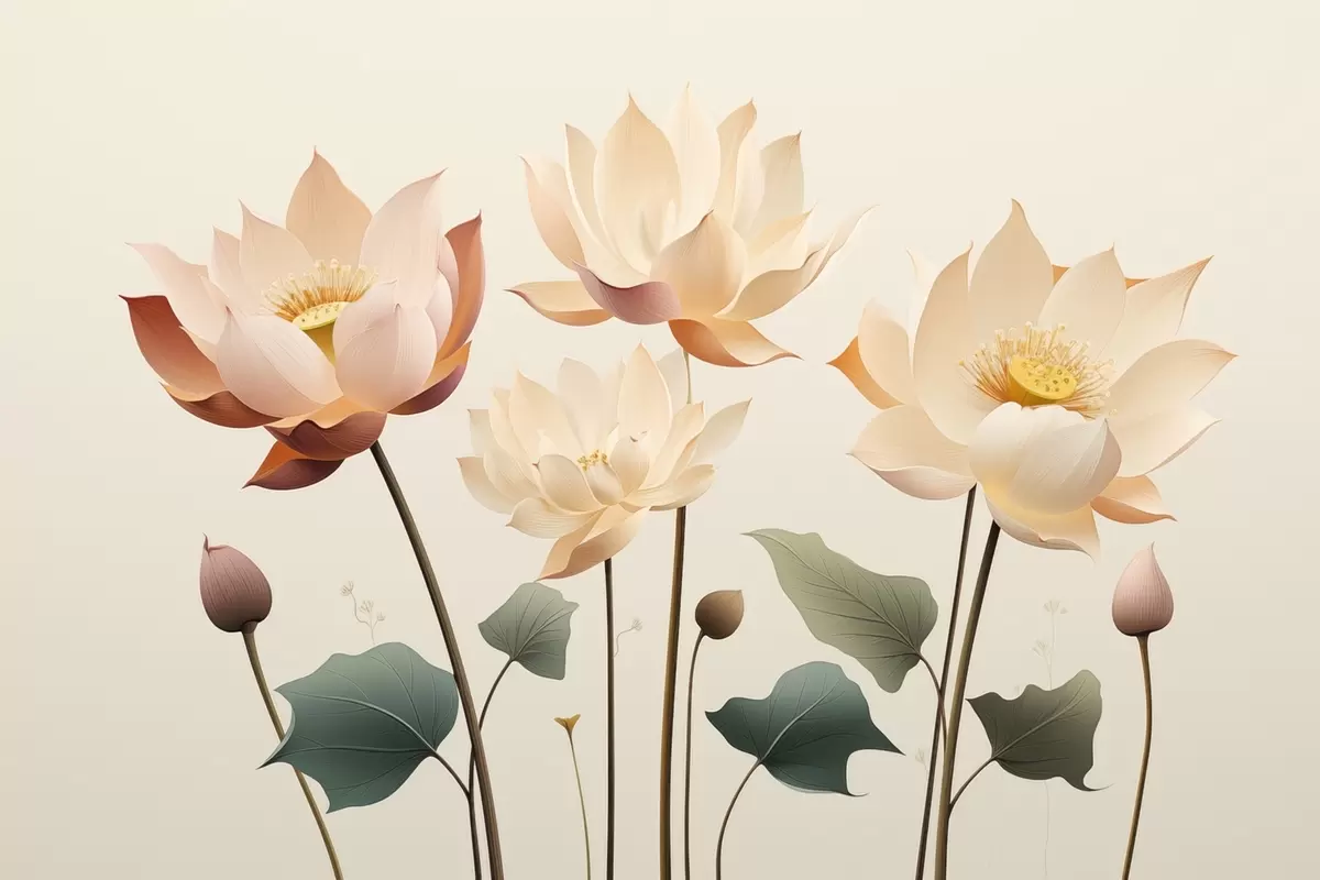 Fotomurales Elegantes flores de loto en una suave paleta de colores pastel Nr. w09306