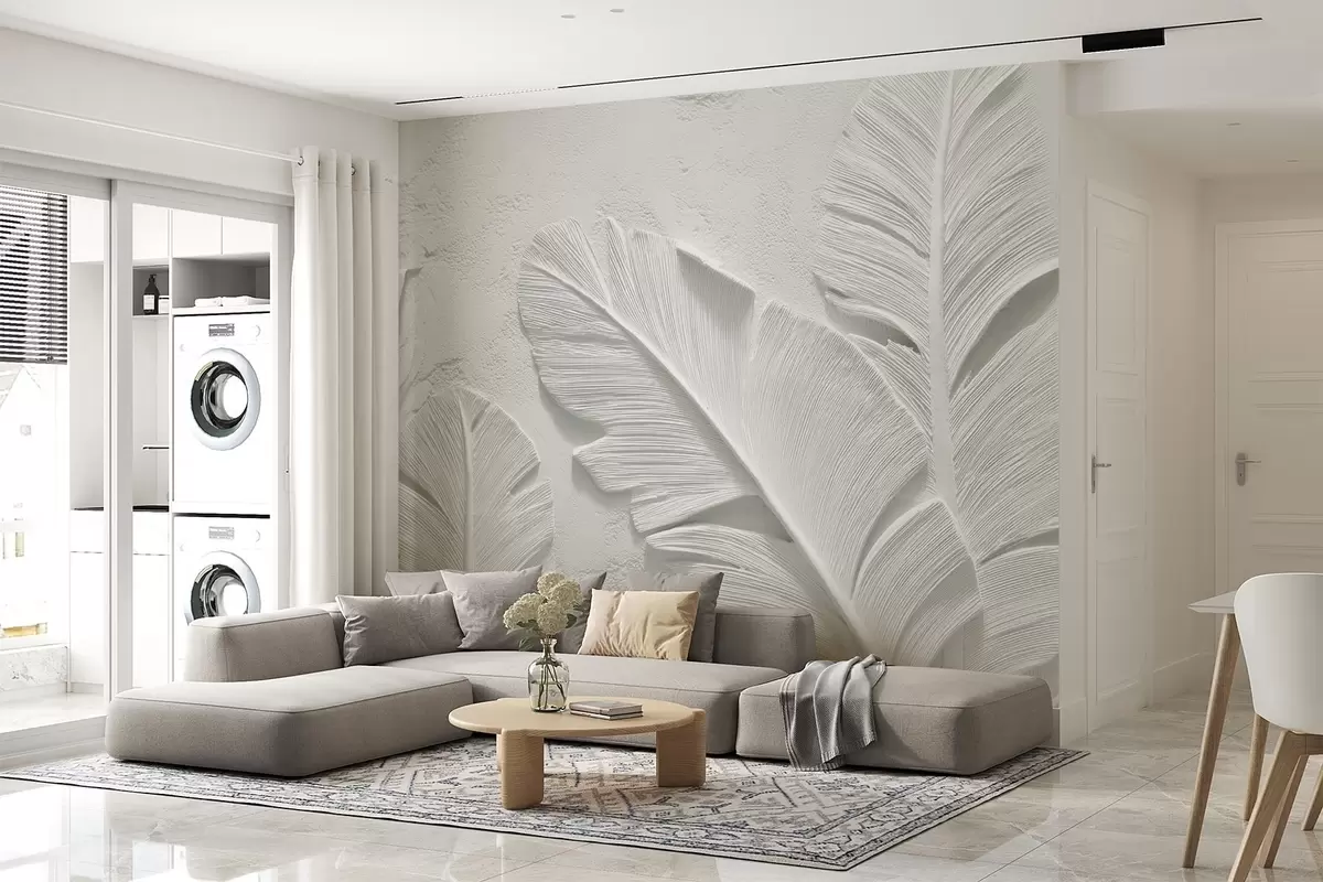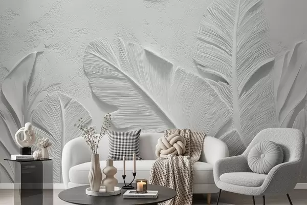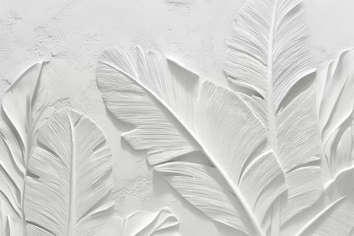 Fotomurales Hojas grises texturizadas sobre un fondo con relieve de yeso falso Nr. w09307