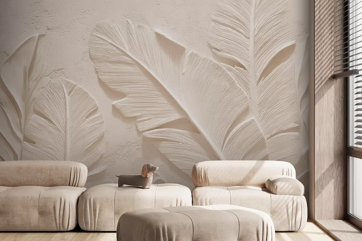 Fotomurales Hojas en relieve en cálidos tonos beige-arena Nr. w09307v1