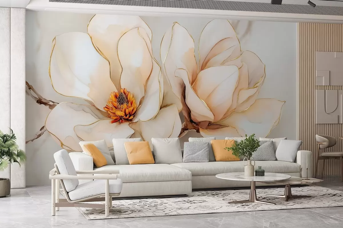 Fotomurales Grandes flores de magnolia clara con pétalos suaves Nr. w09308