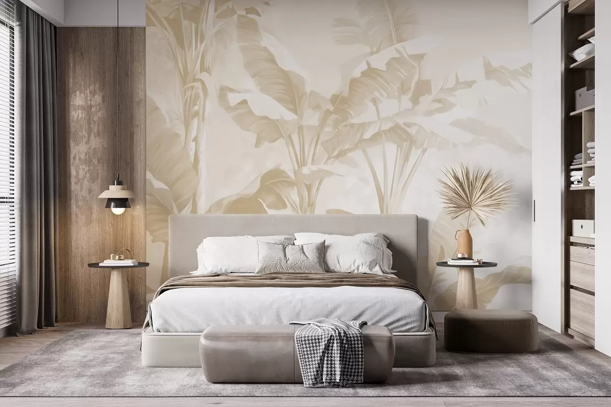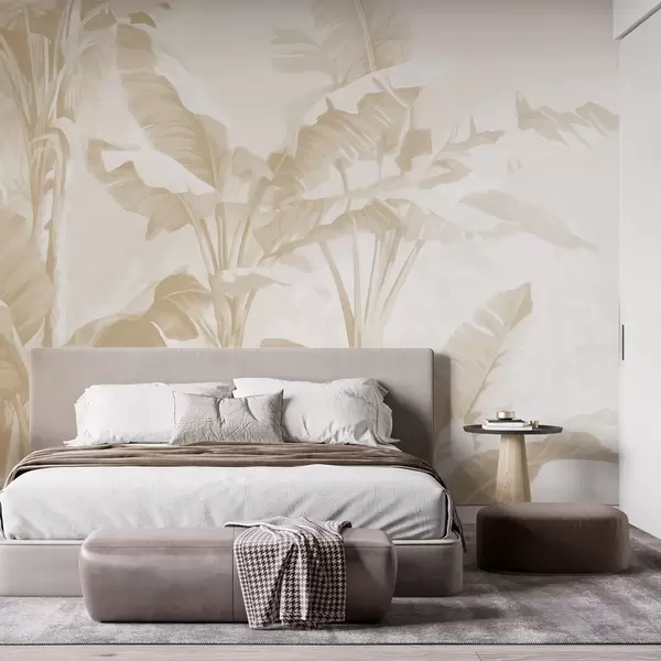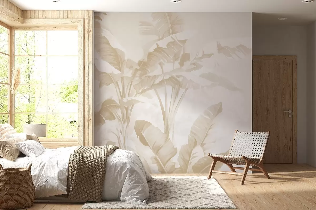 Fotomurales Hojas de plátano tropical en suaves tonos beige Nr. w09311v2
