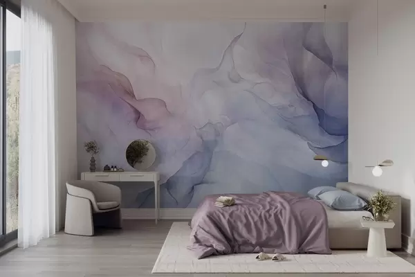 Fotomurales Pintura abstracta texturizada con tonos pastel fluidos de rosa, morado y azul que crean un efecto suave Nr. w09318