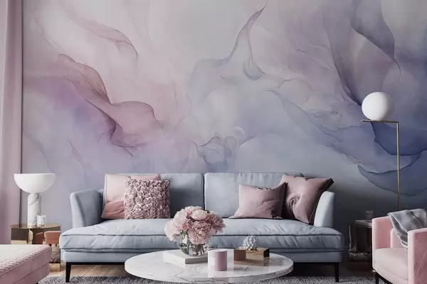 Fotomurales Pintura abstracta texturizada con tonos pastel fluidos de rosa, morado y azul que crean un efecto suave Nr. w09318
