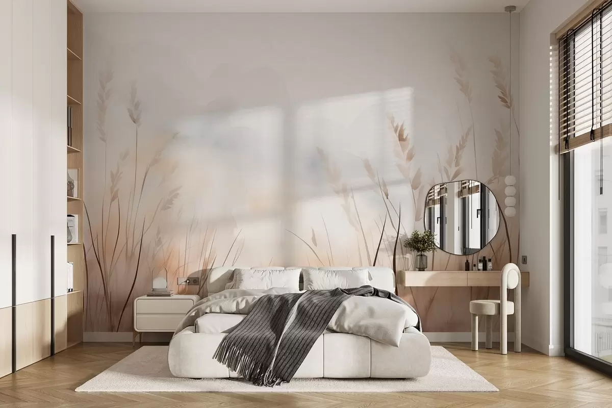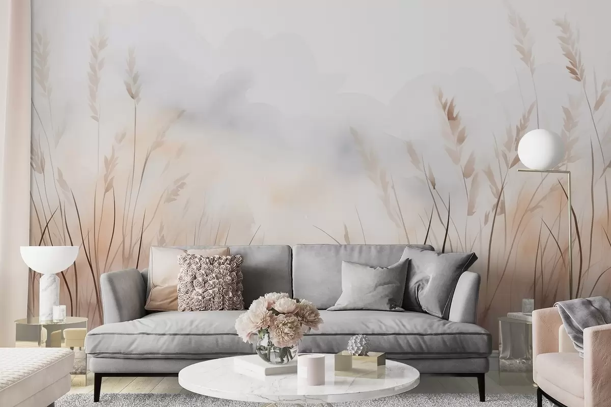 Fotomurales Espigas en niebla en suaves tonos beige y marrón Nr. w09327