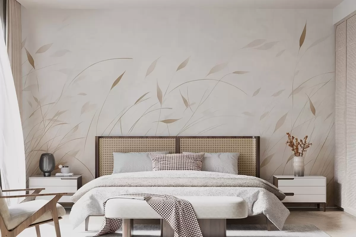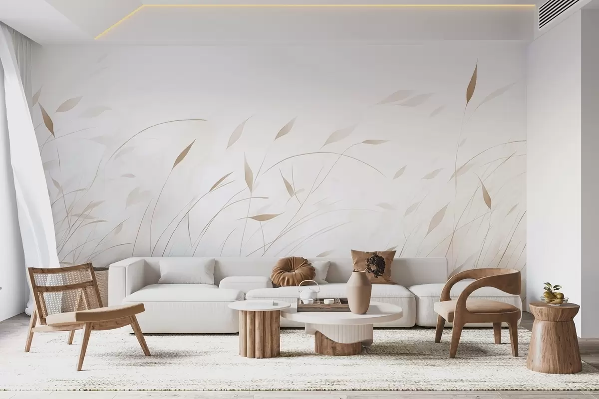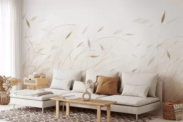 Fotomurales Hierba al viento en estilo acuarela en tonos beige Nr. w09331v1