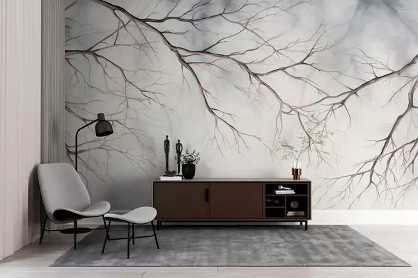 Fotomurales Ramas de árbol con un efecto de textura de acuarela, detalles intrincados, paleta de colores suaves, sobre un fondo claro Nr. w09337
