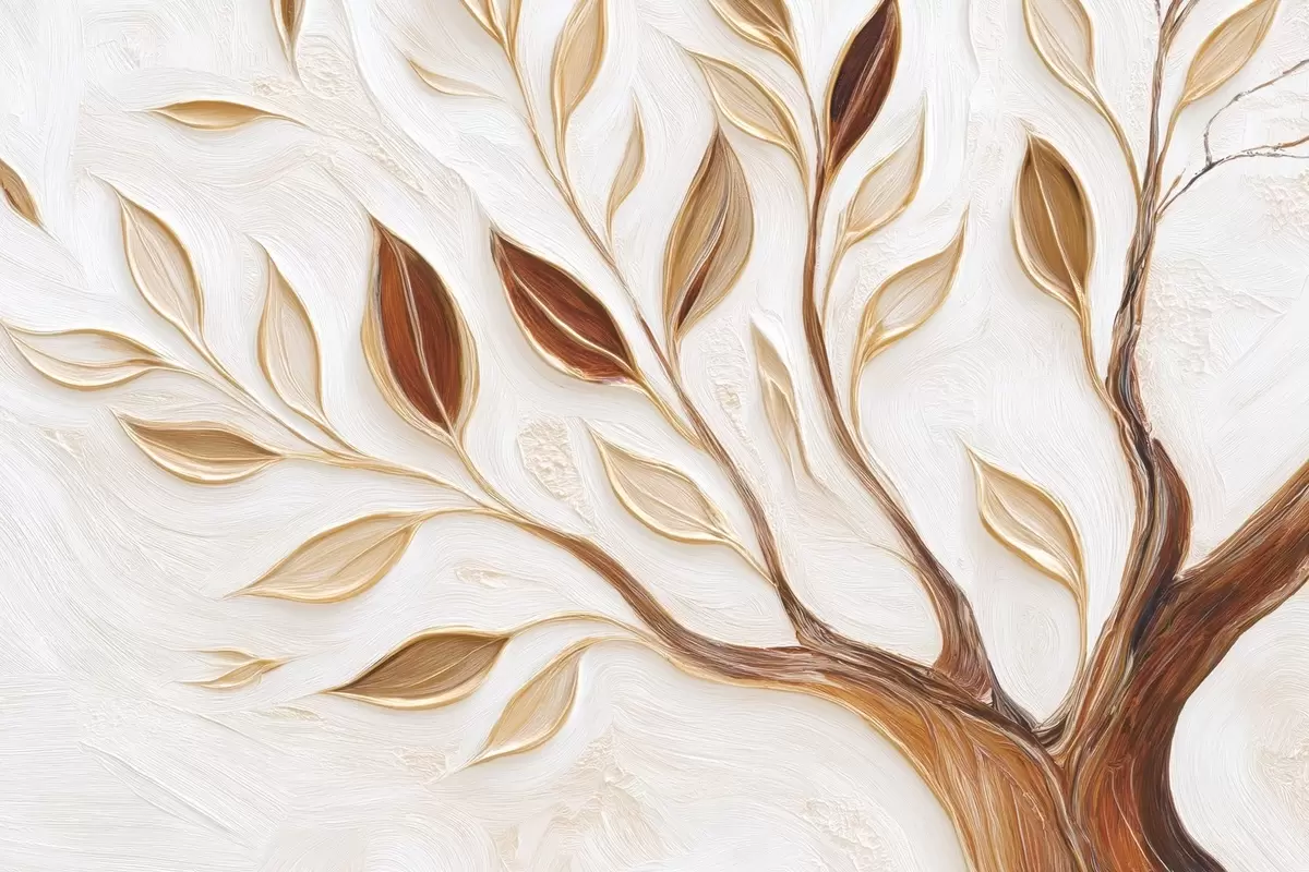 Fotomurales Árbol decorativo con hojas e imitación de fondo texturado Nr. w09349