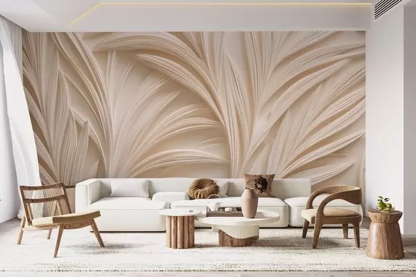 Fotomurales Hojas decorativas de color beige en estilo 3D Nr. w09351