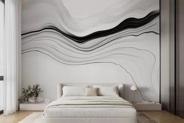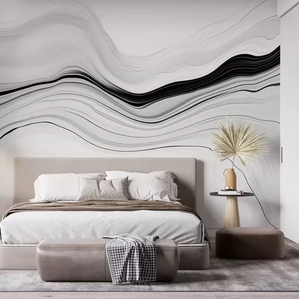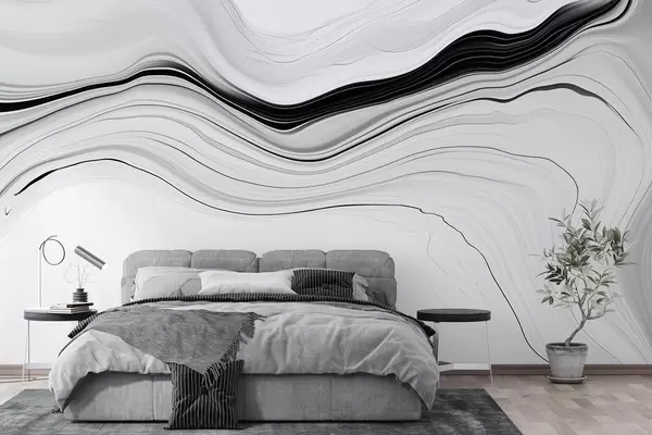 Fotomurales Motivo en blanco y negro con efecto de capas de mármol Nr. w09358