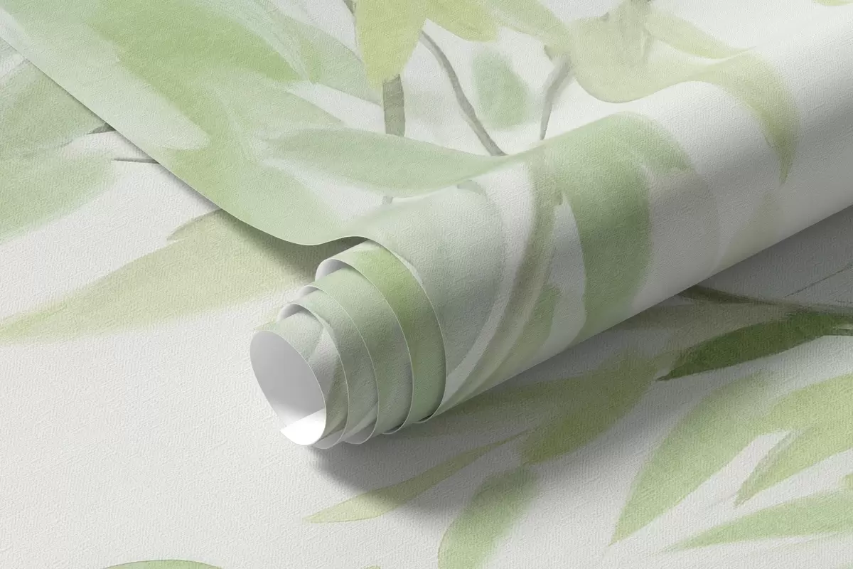 Fotomurales Ramas de sauce llorón con hojas verdes colgando, pinceladas suaves y delicadas, estilo de pintura acuarela Nr. w09365