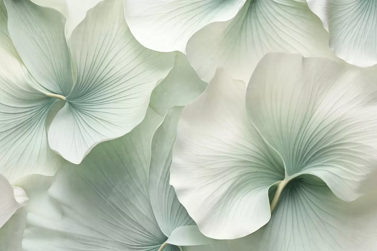Fotomurales Hojas de ginkgo blancas y verdes, textura suave, fondo floral abstracto, estilo minimalista moderno Nr. w09421