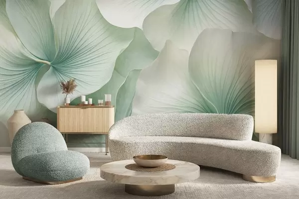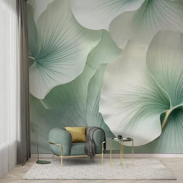 Fotomurales Hojas de ginkgo blancas y verdes, textura suave, fondo floral abstracto, estilo minimalista moderno Nr. w09421