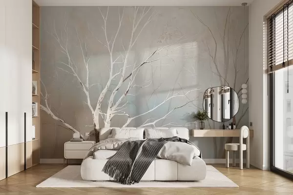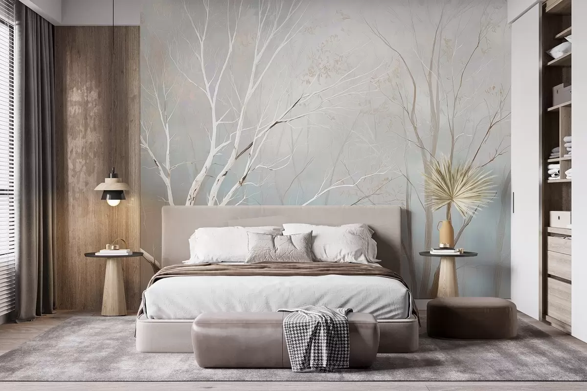 murales de pared Ramas ligeras en la niebla matinal en tonos pastel w09447